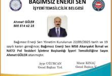 Bağımsız Enerji Sen MSB Akaryakıt İkmal ve NATO Pol Tesisleri İşletme Müdürlüğü İşyeri Temsilcisi olarak Ahmet GÜLER atanmıştır. Sendikamız adına MSB Akaryakıt İkmal ve NATO Pol Tesisleri İşletme Müdürlüğünde sendikal faaliyetleri yürütmek üzere, Sendika İşyeri Temsilcisi olarak Ahmet GÜLER yetkilendirilmiştir. MSB Akaryakıt İkmal…