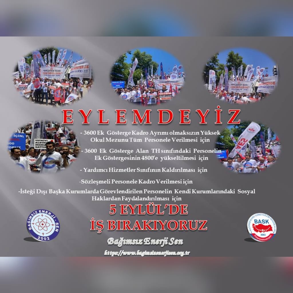 Konuları başta olmak üzere göz ardı edilen sorunlarımız için 5 EYLÜL Pazartesi günü iş bırakıyoruz.