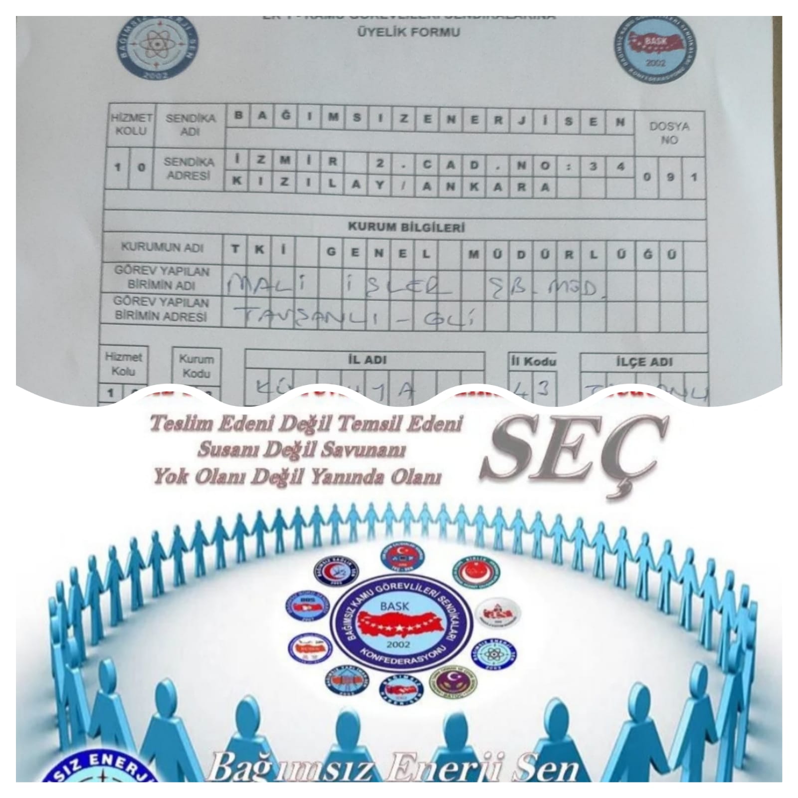 Sarılıktan dolayı memurun hakkını yediren sendikalardan ayrılarak bağımsız sendikacılığı seçen ve sarı sendikacılığa karşı duran bütün arkadaşları tebrik ederiz.