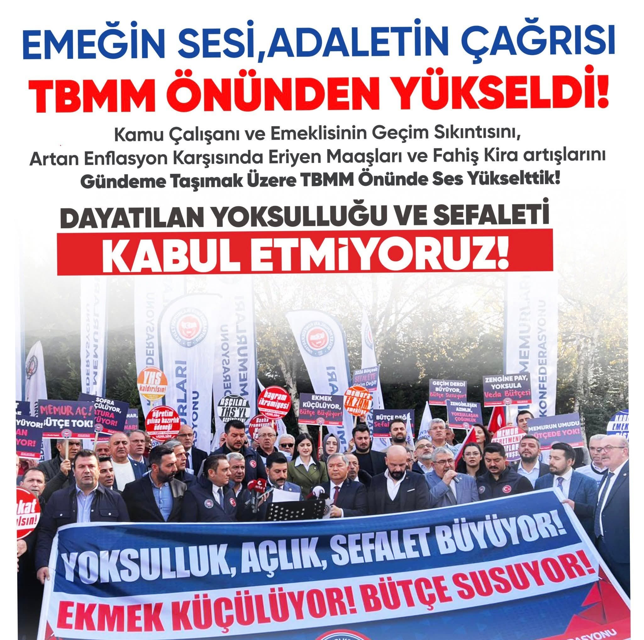 Kamu Çalışanı ve Emeklisinin Geçim Sıkıntısını, Artan Enflasyon Karşısında Eriyen Maaşları ve Fahiş Kira artışlarını Gündeme Taşımak Üzere TBMM Önünde Ses Yükselttik!