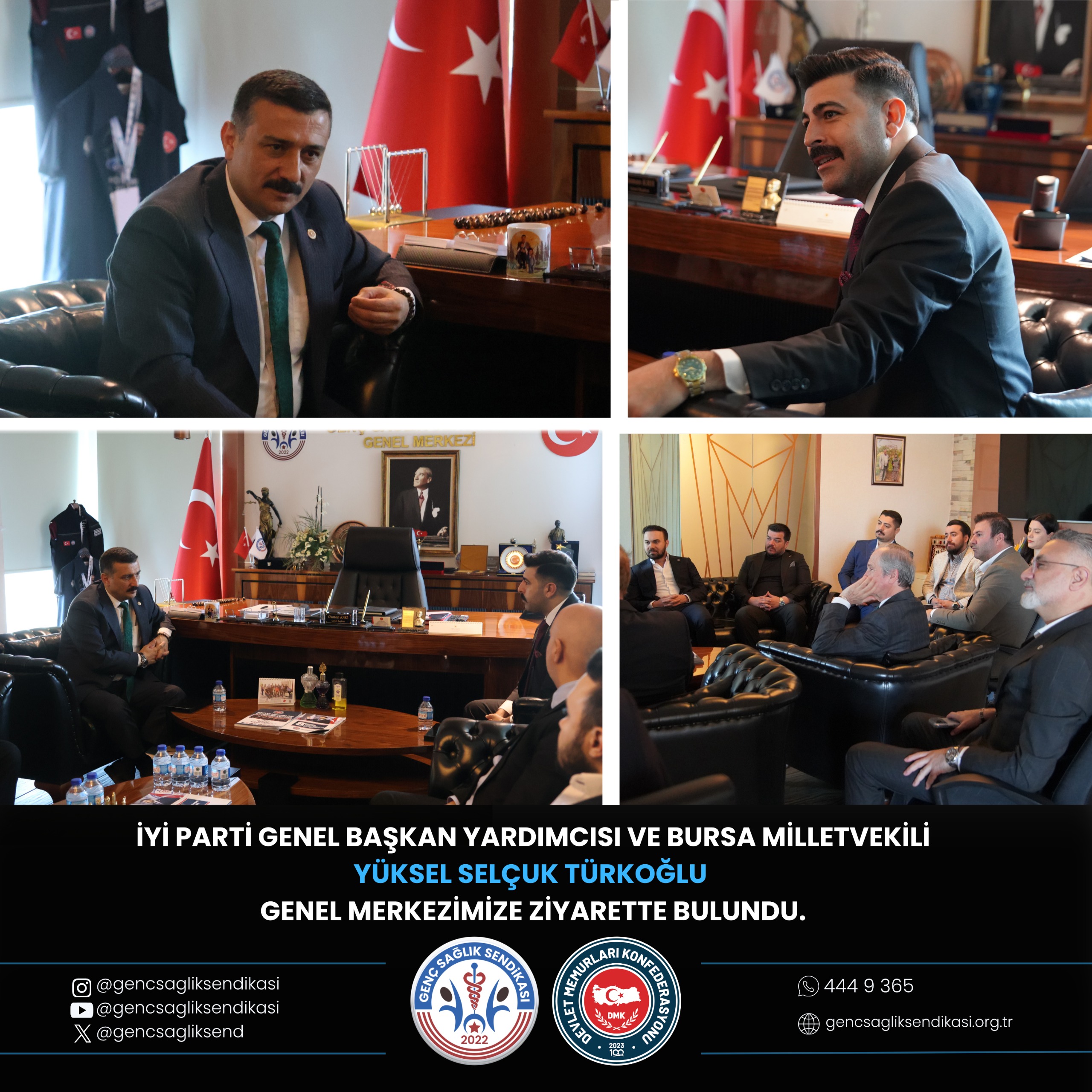 İYİ Parti Genel Başkan Yardımcısı ve Bursa Milletvekili Sayın Yüksel Selçuk Türkoğlu, Devlet Memurları Konfederasyonu (DMK) Genel Merkezimizi ziyaret etti.