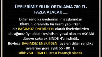 BAĞIMSIZ ENERJİ-SEN olarak üyelerimizden alacağımız üye aidatı kesintisini yasal olan en ASGARİ düzeye çekerek BİNDE 4’e indirdik. Böylece BAĞIMSIZ ENERJİ-SEN…